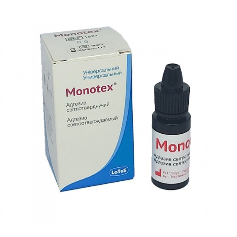 Представляем вам адгезив светоотверждаемый дентин-эмалевый универсальный Monotex (Монотекс) 6 г. Этот продукт разработан для использования в качестве адгезионного агента между эмалью и дентином и светоотверждаемыми пломбировочными композиционными материалами любого типа.