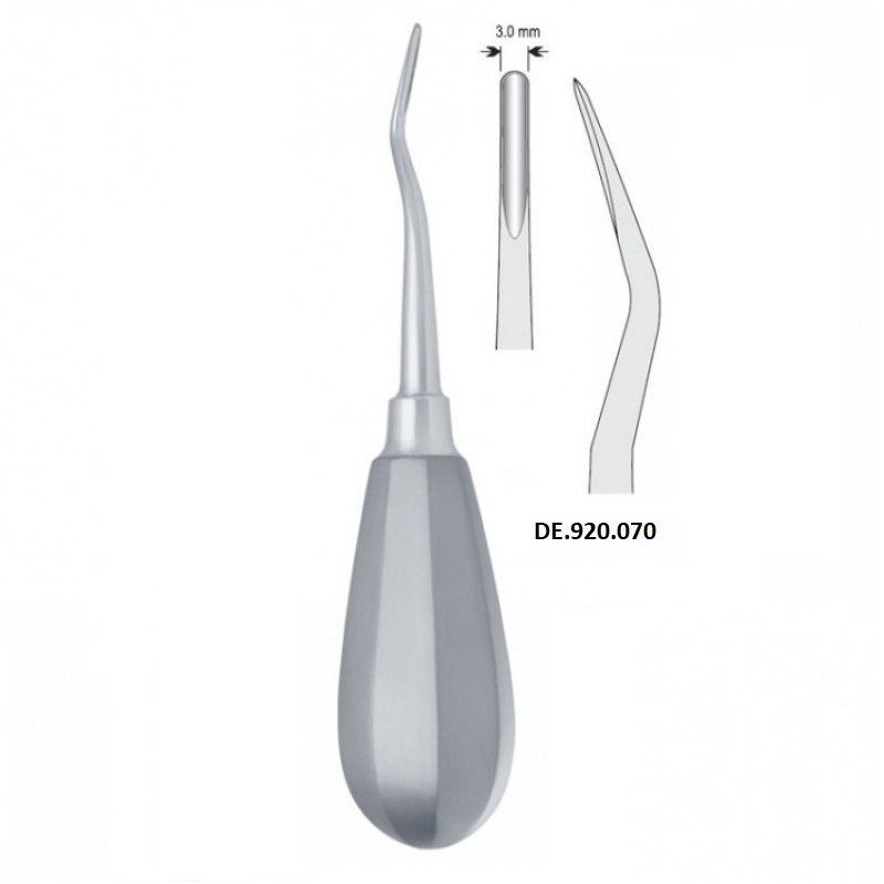 Элеватор обладает зубчатым байонетным наконечником шириной 3мм, что обеспечивает оптимальное разделение и поднятие зубных корней, минимизируя повреждение окружающих тканей.