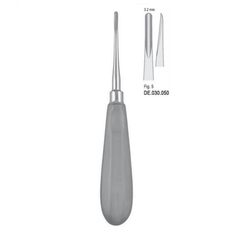DЕ.030.050 - прямой элеватор Bein имеет оптимальную форму и размер, обеспечивающие удобство использования и полный контроль во время работы. Ширина рабочей части составляет 3.2 мм, что позволяет осуществлять удаление корневых фрагментов и другие манипуляции с высокой точностью и эффективностью.