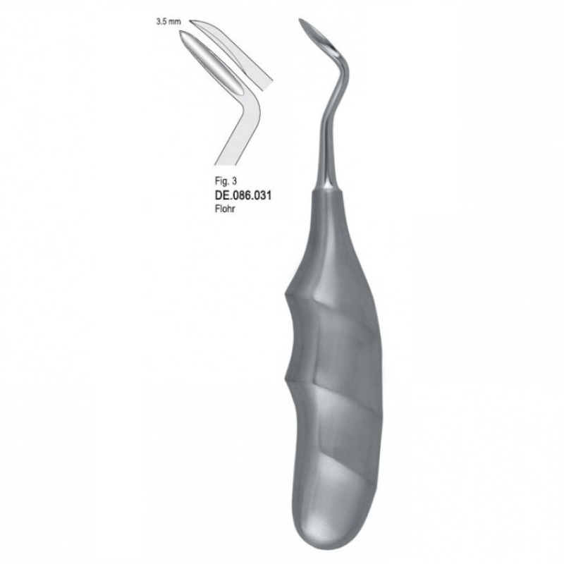 DЕ.086.031 - правый элеватор Flohr с анатомической ручкой является идеальным выбором для эффективной и комфортной стоматологической практики. Его ширина рабочей части составляет 3.5 мм, что позволяет использовать его в широком спектре клинических случаев, обеспечивая точность и надежность при подъеме и удалении зубов.