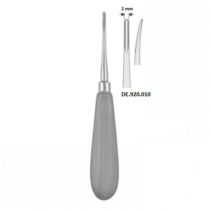 Ширина рабочей части люксатора составляет 2 мм, обеспечивая оптимальные условия для проведения процедуры люксации. Инструмент изготовлен из высококачественных материалов, обеспечивающих его прочность и долговечность.