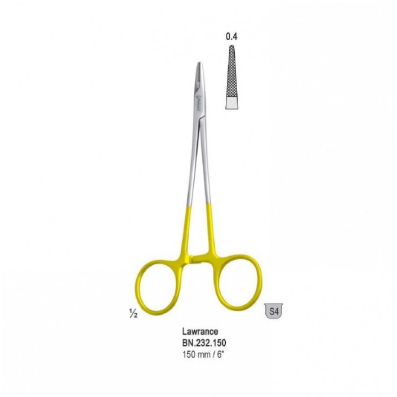 BN.232.150 Иглодержатель Falcon-Grip Lawrance 150 мм TC с вставкой из карбида вольфрама - надежный и эффективный инструмент для хирургов, которые ценят качество, точность и долговечность своего оборудования. Он поможет достичь отличных результатов и обеспечит процесс операции безопасным и комфортным.