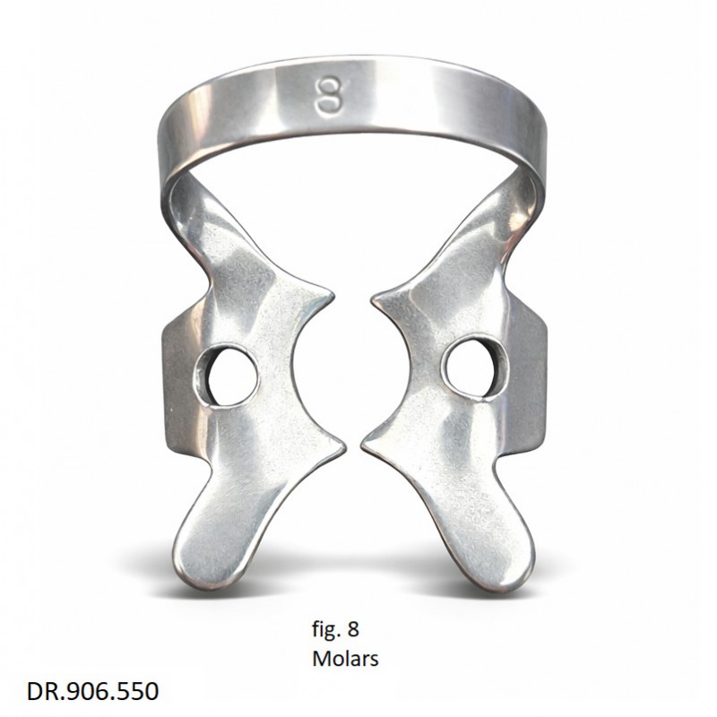 DR.906.550 Кламмер для моляров - незаменимый инструмент в стоматологии для фиксации раббердама на молярах. Этот кламмер специально разработан для обеспечения надежной фиксации и удобства использования во время стоматологических процедур.