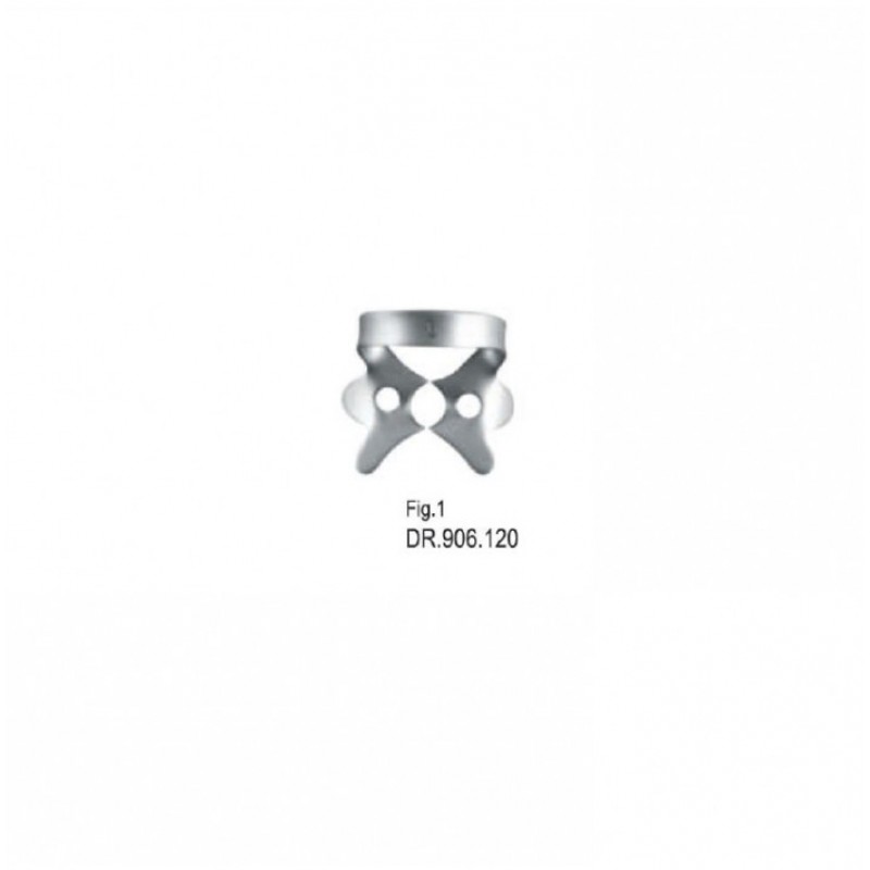 DR.906.120 Кламмер для премоляров - незаменимый инструмент в стоматологии для фиксации раббердама на молярах. Этот кламмер специально разработан для обеспечения надежной фиксации и удобства использования во время стоматологических процедур.