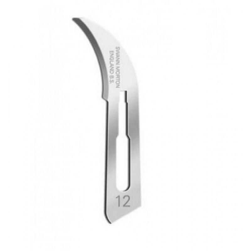 Лезвие для скальпеля №12, произведенное английской компанией Swann-Morton, представляет собой небольшое, заостренное, полумесяцеобразное лезвие, затачиваемое по внутреннему краю кривизны. Это универсальное лезвие находит применение в различных медицинских процедурах и хирургических вмешательствах.