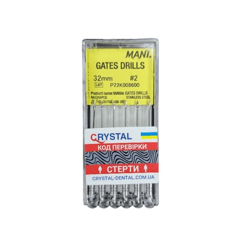 Инструменты Gates Drills производятся компанией Mani из Японии. Mani - это известный производитель стоматологических инструментов, известный своим высоким качеством и надежностью.