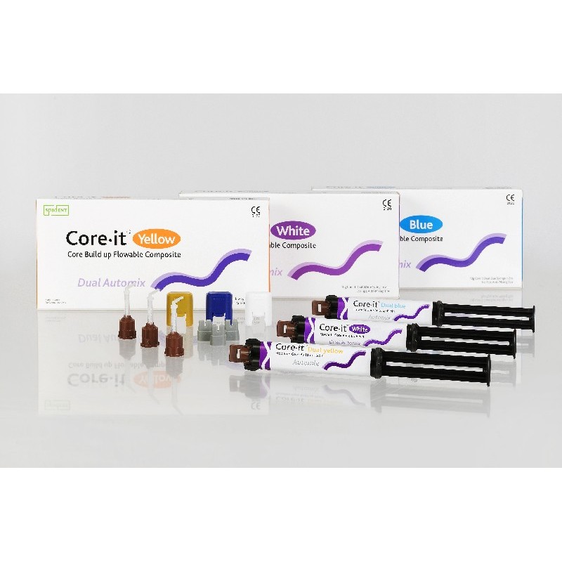 Flowable Dual Cured Core Build-up Resin, оттенок Yellow – это двухкомпонентный композитный материал для использования при изготовлении культевых вкладок и цементировании штифтов.