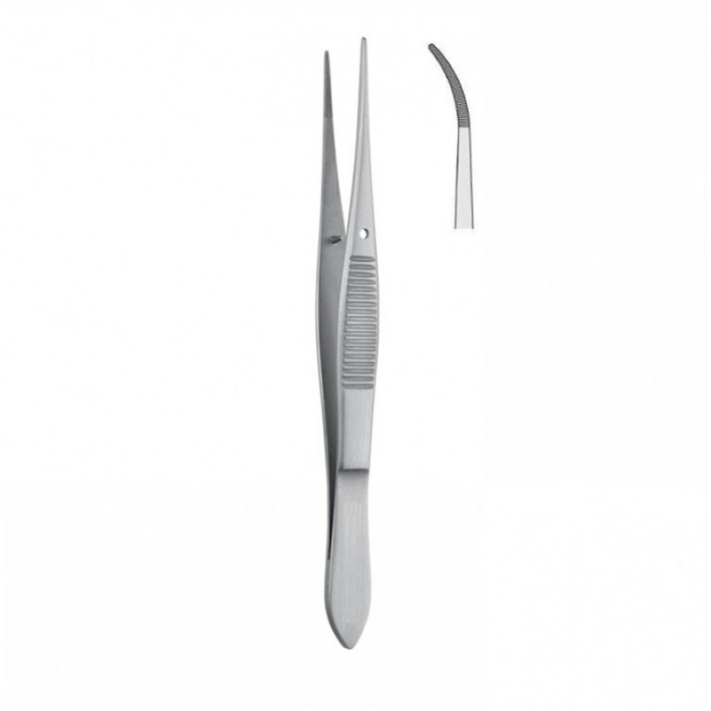 Изогнутая форма пинцета позволяет легко дотянуться до труднодоступных мест и обеспечивает оптимальный угол для точной фиксации мелких объектов и тканей. Это делает его незаменимым инструментом при проведении хирургических и медицинских процедур.