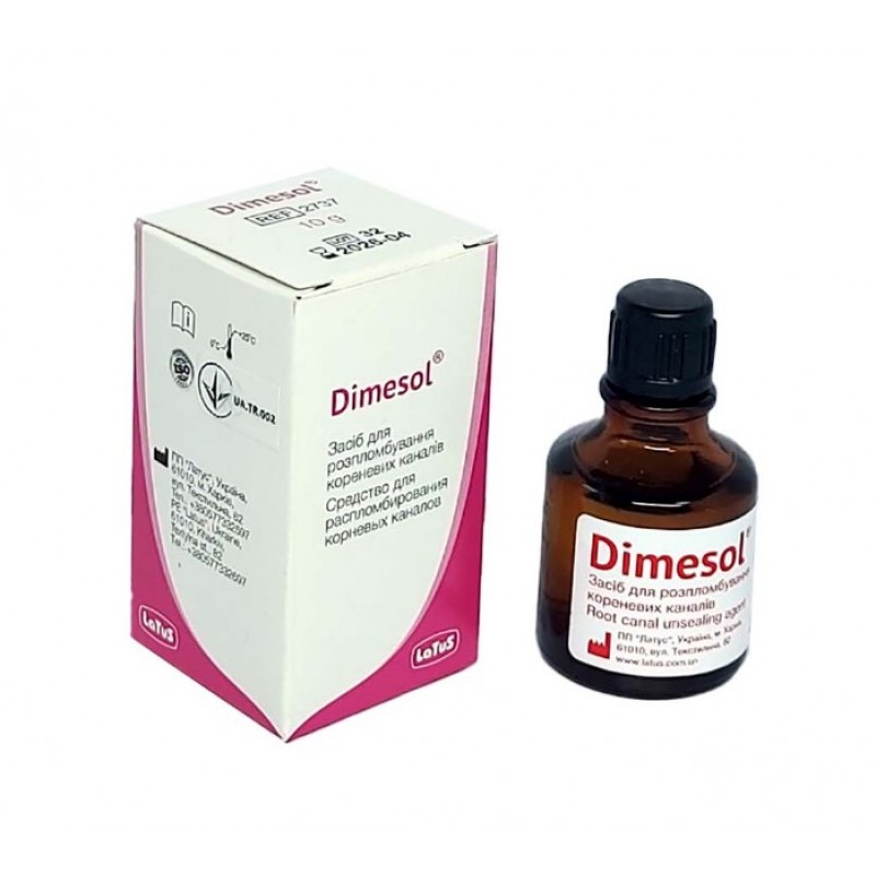 DimeSol используют при перепломбировке корневых каналов для очистки канала от пломбировочного материала (Citofil Са, Citofil F), эпоксидных, резорцин-формалиновых смол и цинкоксид-эвгенольных цементов.