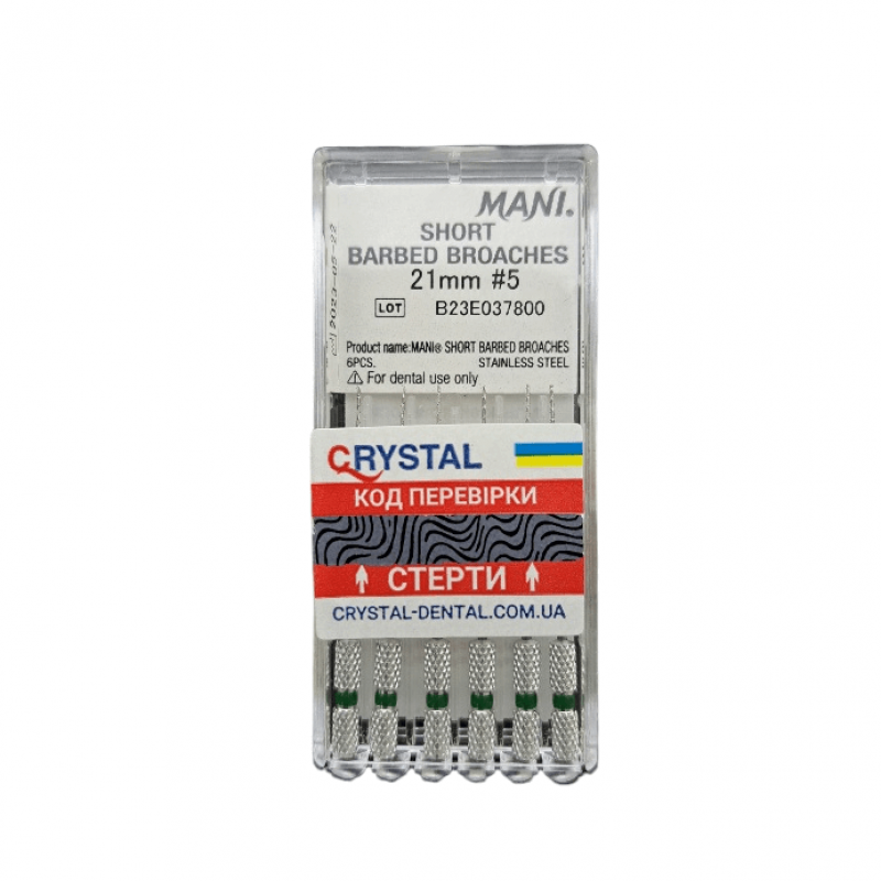 Barbed Broaches Mani Пульпоэкстракторы (6шт.) 21мм, №5- это надежные инструменты для удаления пульпы из корневого канала. Они являются неотъемлемой частью процедуры эндодонтического лечения, обеспечивая эффективное и безопасное удаление пульпы для последующей обработки и заполнения канала.