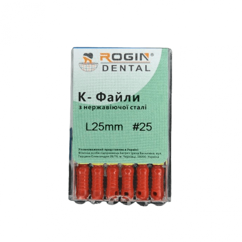 K-Files 25мм, #25 (6шт.) - это ручной эндодонтический инструмент, производимый компанией Shenzhen Rogin Medical Co., Ltd.