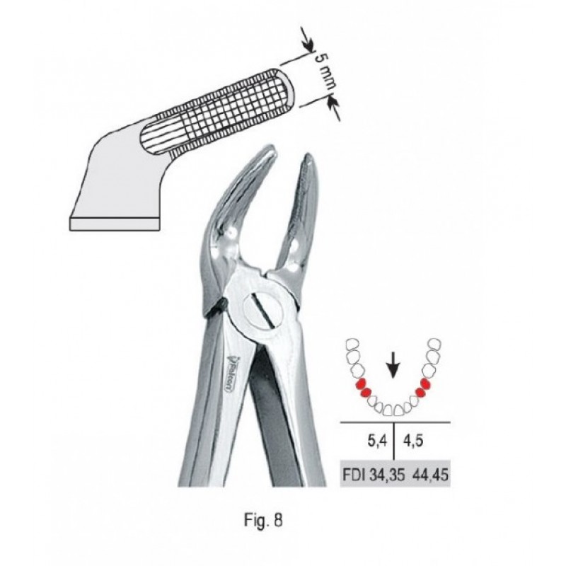 DE.800.080 Щипцы экстракционные для удаления нижних премоляров - незаменимый инструмент в стоматологии. Они обеспечивают безопасность, эффективность и комфорт во время процедуры, что способствует достижению отличных результатов и удовлетворенности как у врача, так и у пациента.