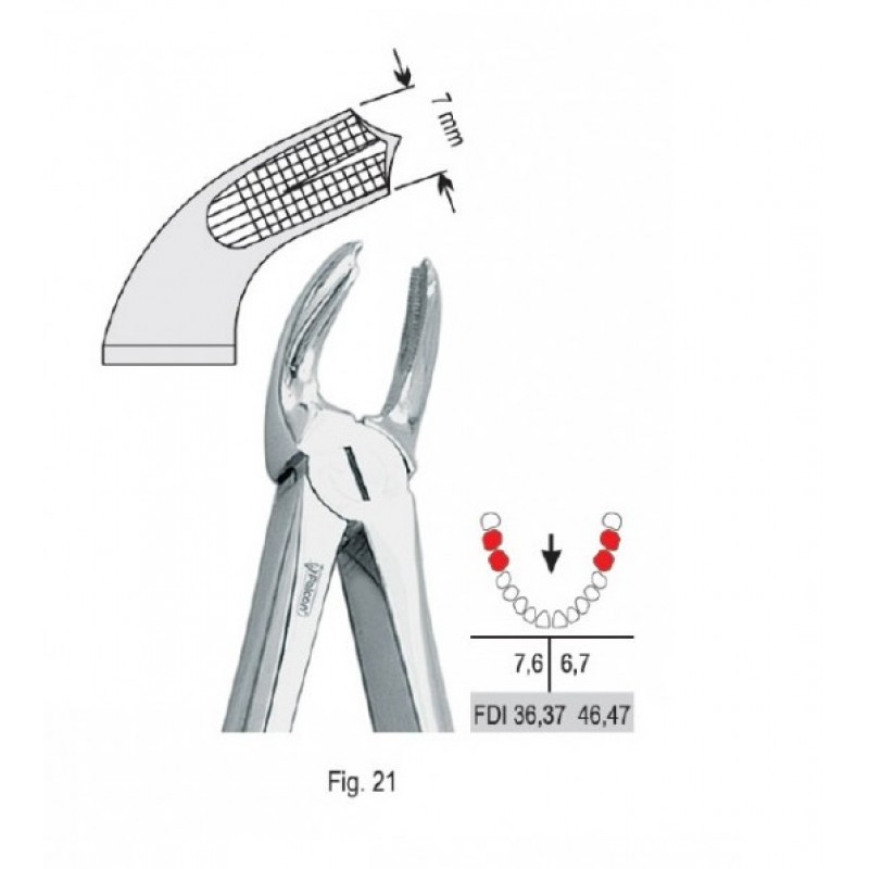 Щипцы имеют прочную и прочно сцепленную конструкцию, которая обеспечивает стабильность и контроль при удалении нижних моляров. Ручки инструмента имеют эргономичную форму, что позволяет стоматологу комфортно удерживать и манипулировать ими во время процедуры.
