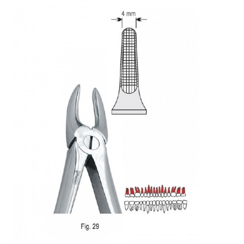 Рабочие поверхности щипцов имеют остроту и точность, необходимые для захвата и удаления корней верхних зубов. Материалы высокого качества и тщательная отделка гарантируют долговечность и надежность использования инструмента.