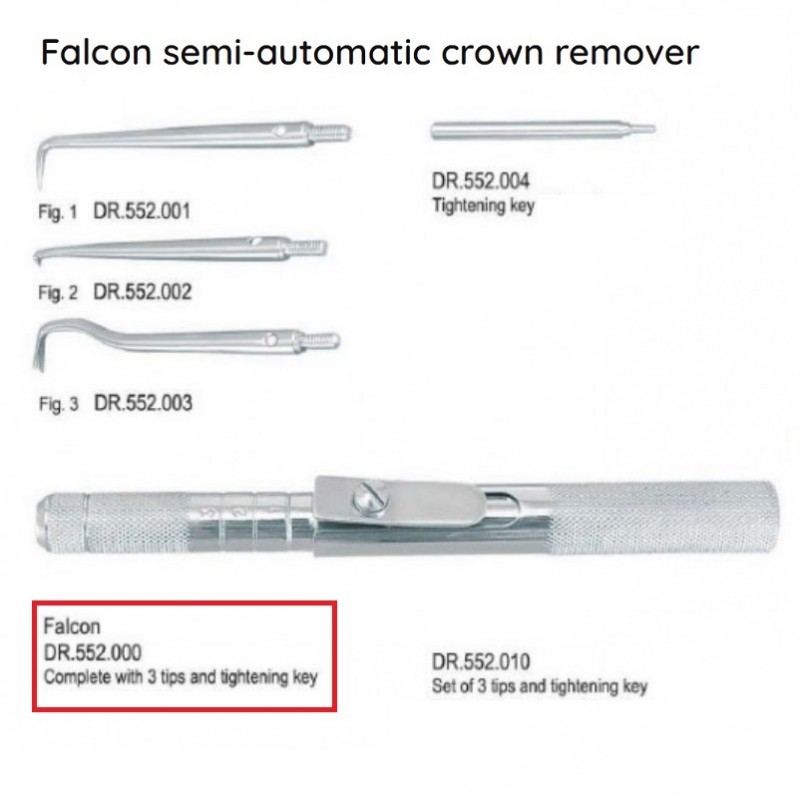 DR.552.000 — полувтоматический инструмент для снятия зубных коронок, разработанный и произведенный компанией FALCON SURGICAL CO. (PVT) LTD., представляет собой современное решение для стоматологов, обеспечивая точность, удобство и безопасность в работе.