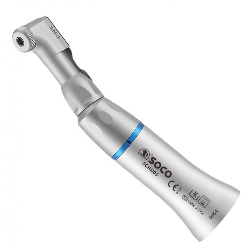 Наконечник угловой D05-C с защелкой, производства SOCO, предназначен для микромоторов и используется в ортопедии, терапии и ортодонтии.